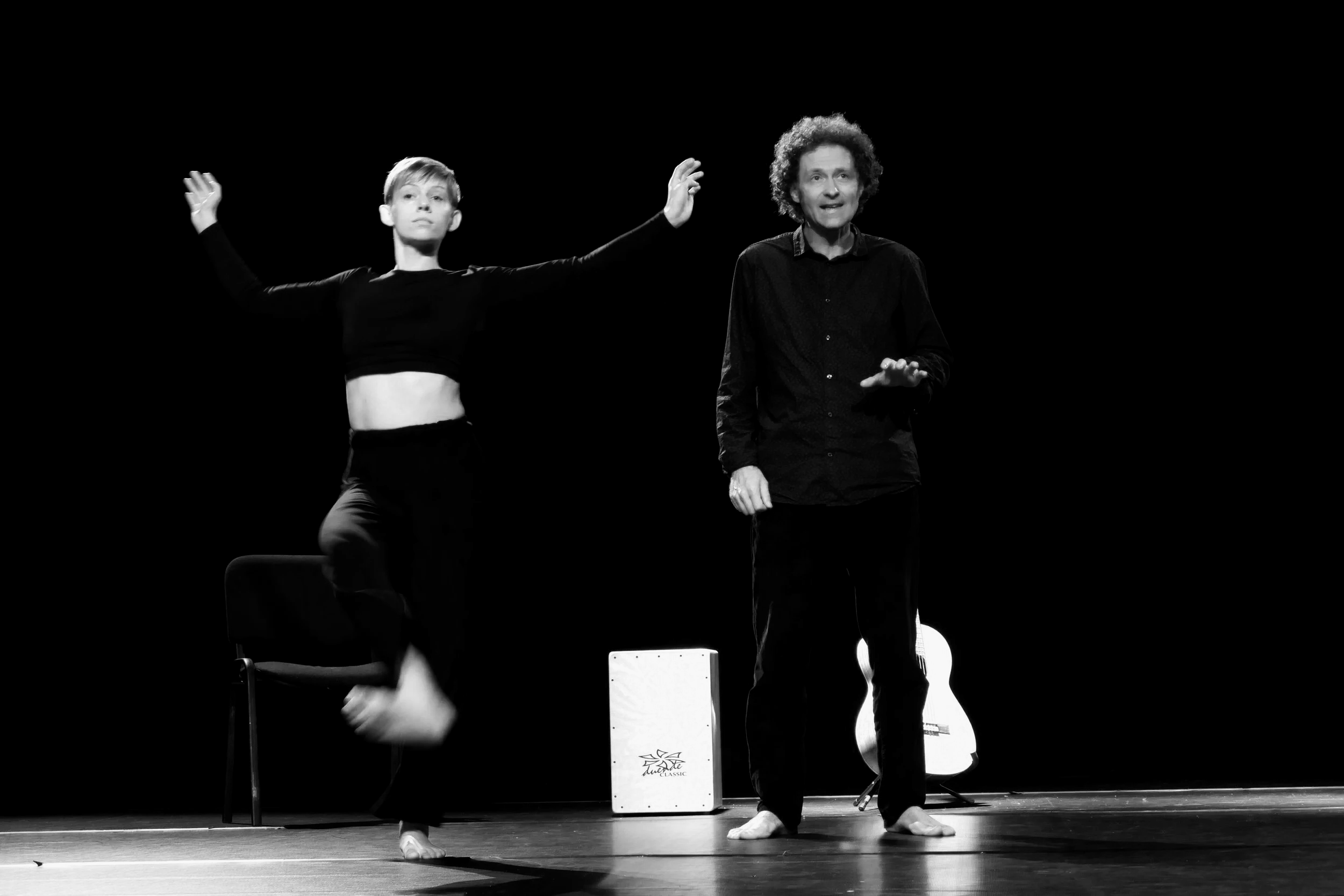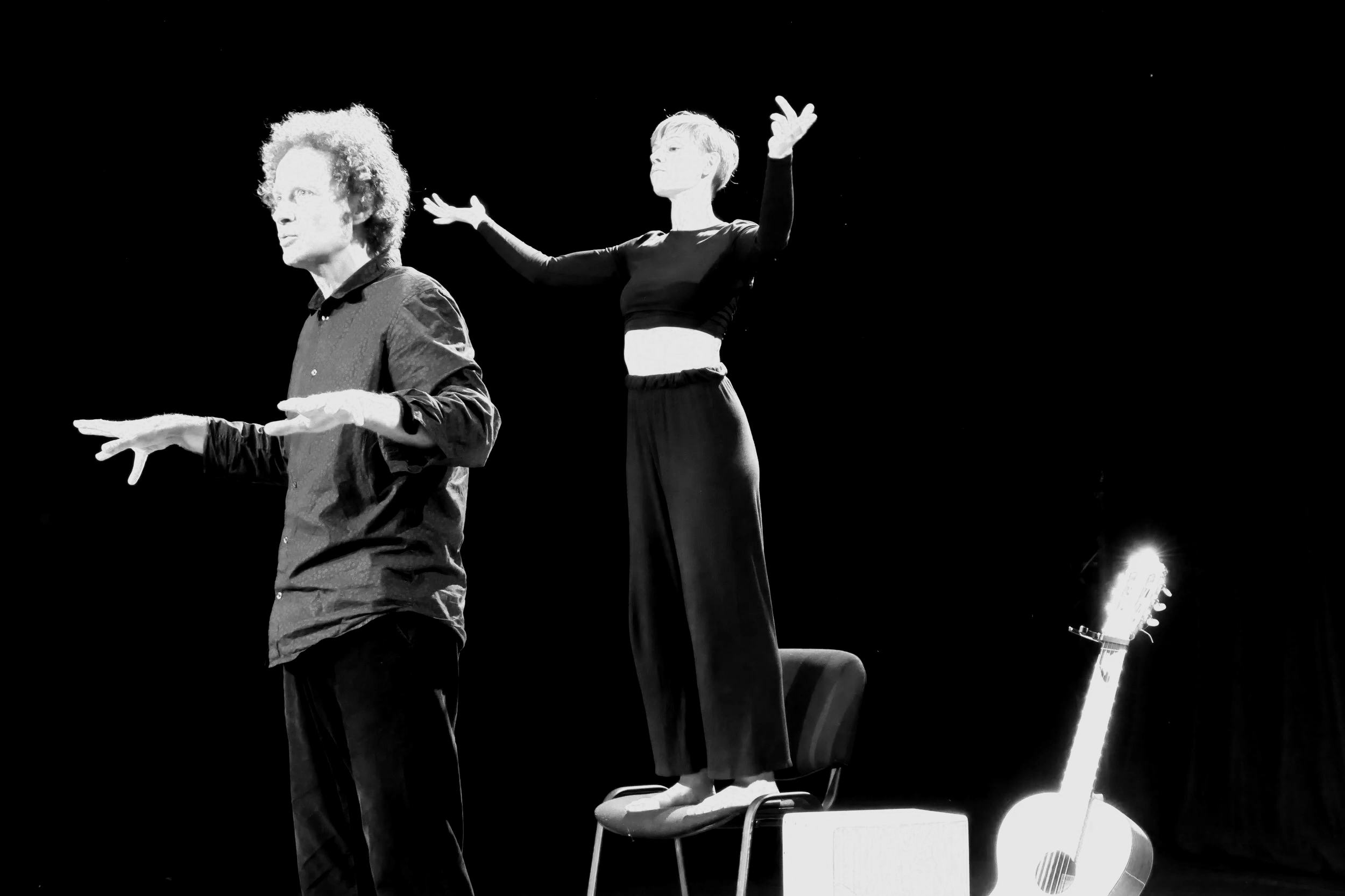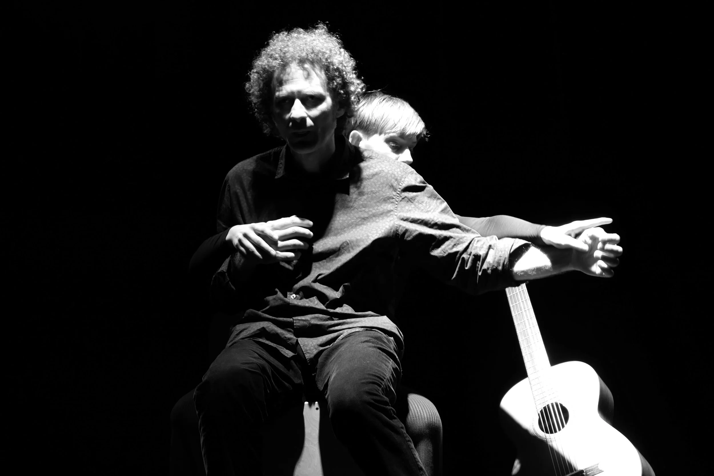 Dans cette création, la danse insuffle au conteur, d’abord immobile, un mouvement qui va densifier sa parole. Puis, les émotions portées par les mots vont à leur tour inspirer la danseuse et nourrir à nouveau le conteur dans une spirale créatrice. Des créations musicales originales accompagneront la parole et le mouvement. Ces compositions seront tantôt instrumentales, avec la guitare comme instrument central, tantôt chantées